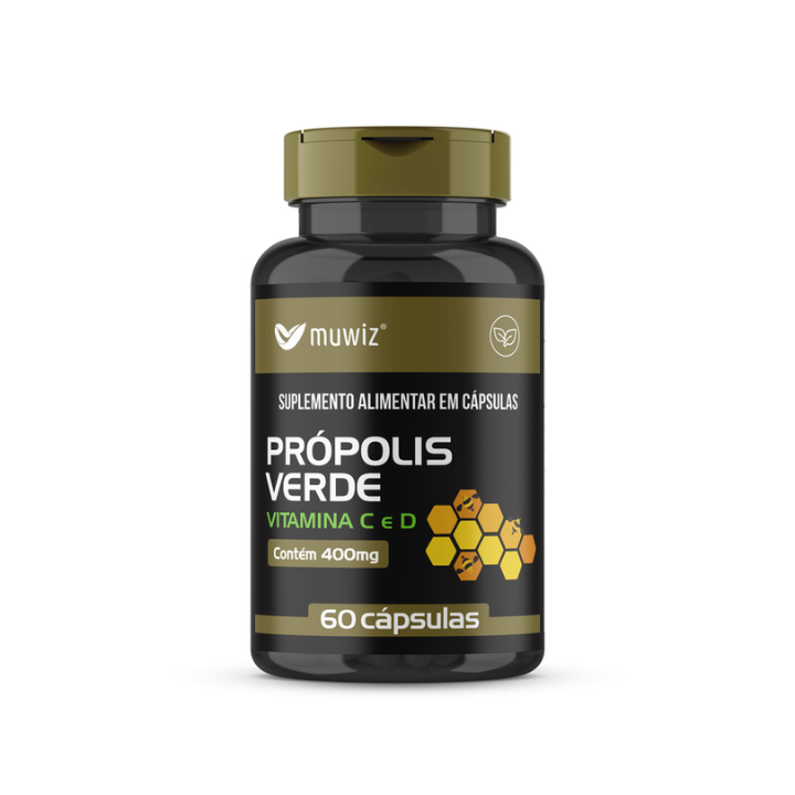 EXTRATO DE PRÓPOLIS VERDE + VITAMINA C + VITAMINA D – 60 CAPS – 400MG
